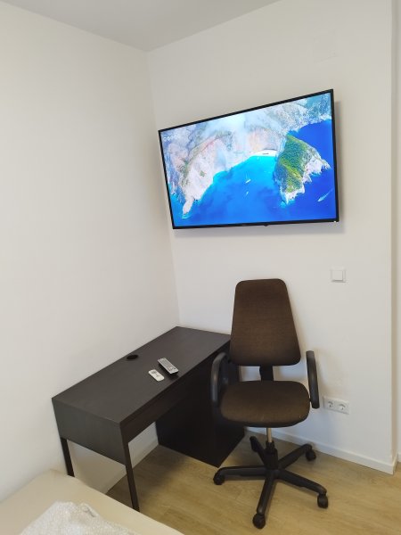 Das Schlafzimmer 2 ist eingerichtet mit einem 47 Zoll-Flatscreen TV, einem französischen Bett (1,40x2,00 m) und einem Kleiderschrank.