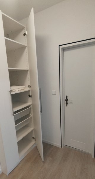 Im Flur steht eine Garderobe / Kleiderschrank mit Kleiderbügeln und ein großer Einbauschrank zu Verfügung.