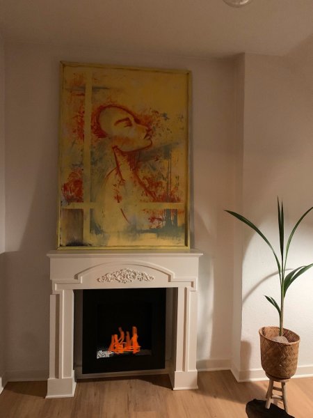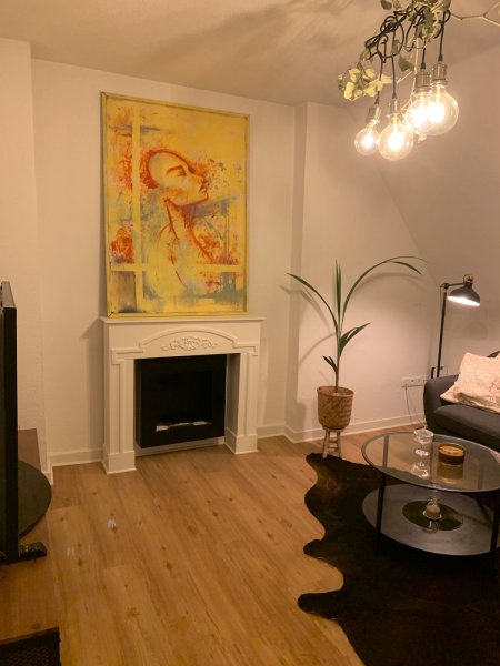 [Unter anderem ein Ethanol Kamin, nagelneue Nespresso Kaffeemaschine, Massivholzmöbel aus Handarbeit, extravagantes Kunstgemälde, echter Kuhfell Teppich, ein weißes Granitspülbecken, große Pflanzen]