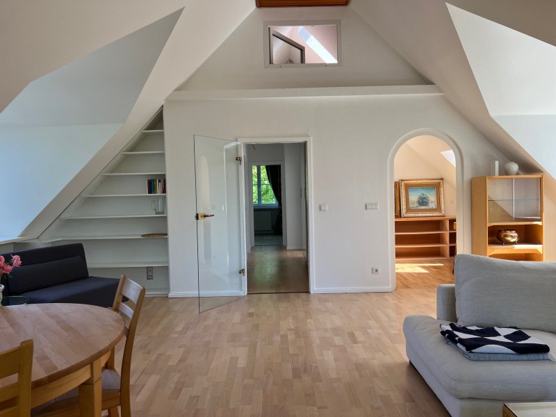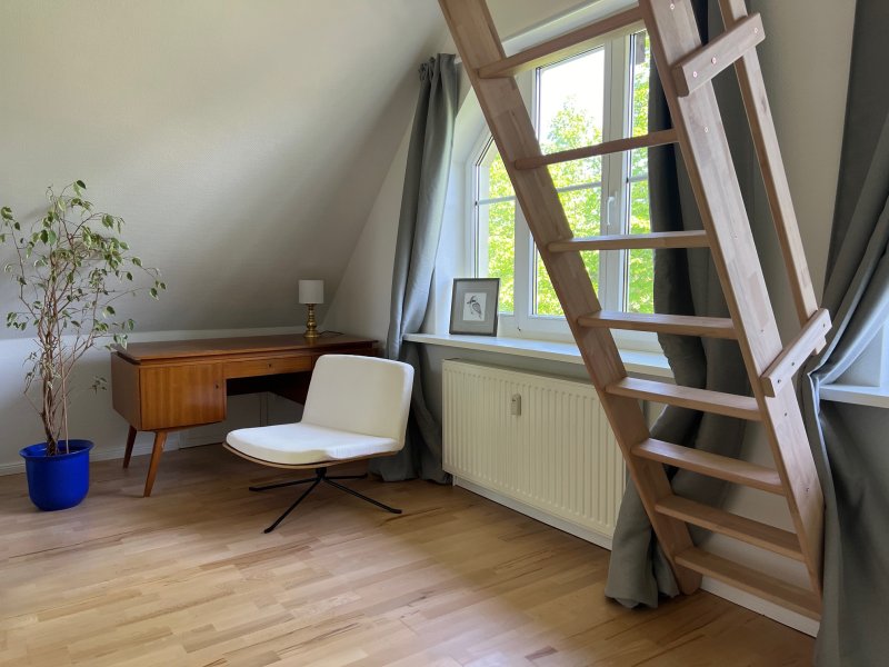 Als zweite Ebene ist der Giebel zu einem bezaubernden Dachzimmer ausgebaut, das sowohl für Gäste als auch als Stauraum oder auch als Schlafbereich genutzt werden kann.