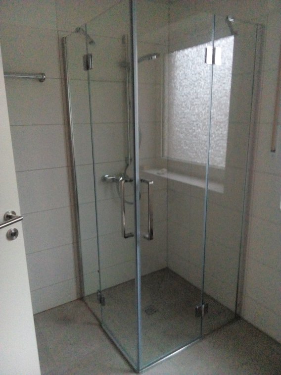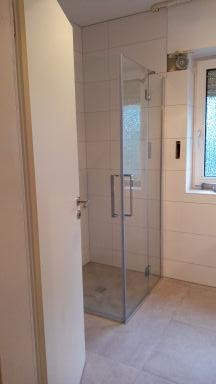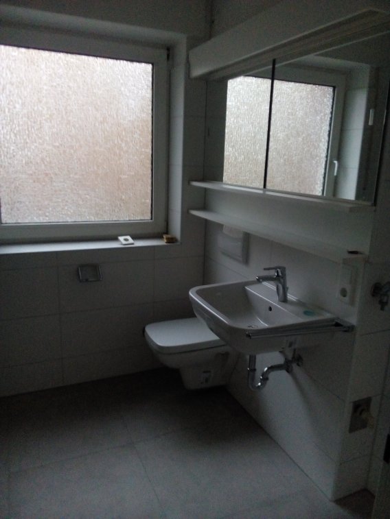 * Bad: neue Wand- und Bodenfliesen; neuer ebenerdig ausgefliester Duschbereich; neue Toillette