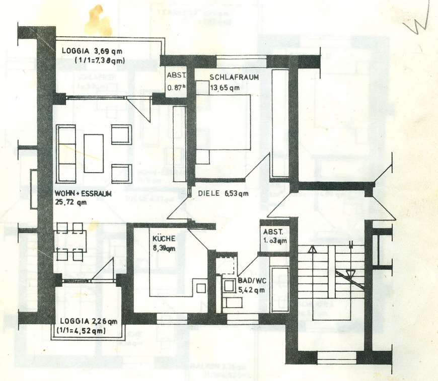 * Größe: reine Wohnfläche ca. 61 qm; 2 Loggien (rein: 7,38 qm + 4,52 qm); Gesamtmietfläche: 66,95 qm