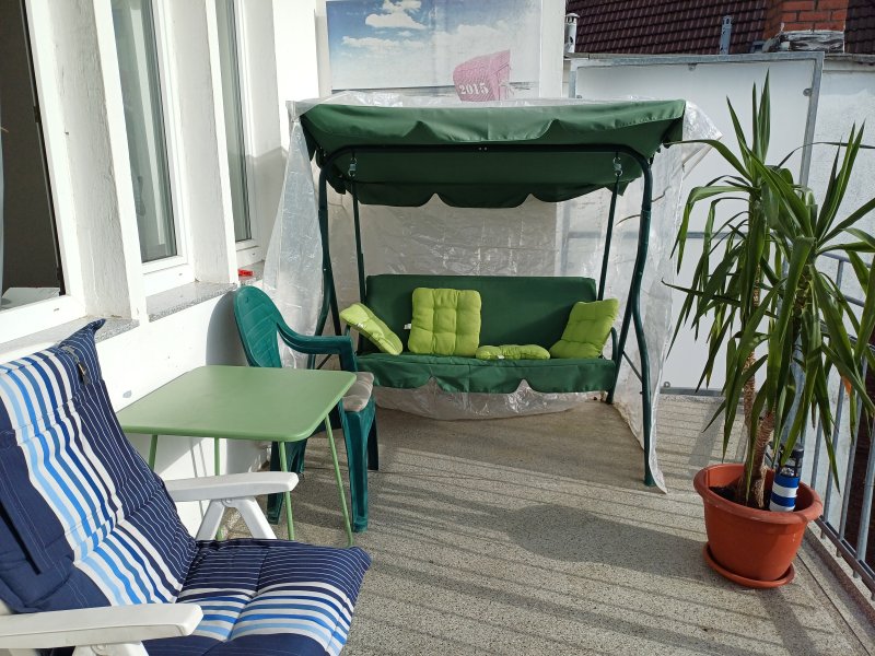 In der grossen Küche wird gekocht und auf unserem Balkon mit Hollywoodschaukel gechillt Wir kochen und essen häufiger zusammen.