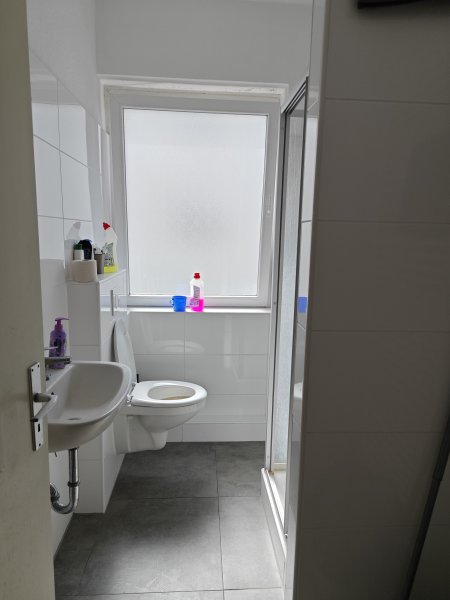 Es handelt sich um eine Drei-Zimmer-Wohnung mit einem Bad und einer Küche. Die Wohnung wird von drei Personen geteilt, von denen zwei Studentinnen sind. Das Bad und die Küche werden gemeinsam genutzt. Das Zimmer ist komplett möbliert und verfügt über einen Schreibtisch mit Stuhl, ein Bett, zwei Schubladenschränke und eine Ecklampe. Es ist ein idealer Ort für Studenten und Berufstätige, die in Aachen oder im Forschungszentrum Jülich arbeiten.