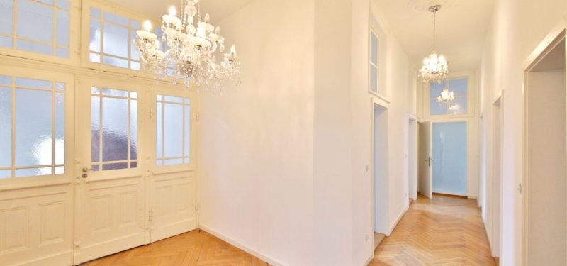 Die Wohnung besticht durch ihren charmanten Altbauflair mit hohen Decken von 4,20m, Kronleuchtern und Stuck an den Decken. Hier fühlt man sich direkt wohl! Neben einem Esszimmer und einem Wohnzimmer gibt es noch vier weitere Zimmer, zwei Bäder und eine separate Küche. Außerdem verfügt die Wohnung über eine 30qm Terrasse, auf der du die Sonne genießen kannst, sowie einen großen Gewölbekeller für zusätzlichen Stauraum.