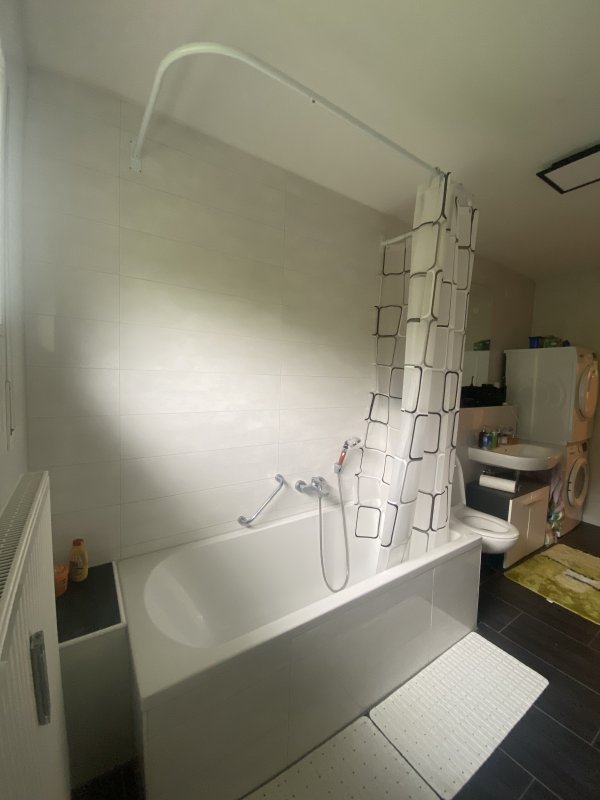 Die WG hat eine gesamt Größe von 200m2, das ausgeschriebene Zimmer hat 19,90m2, man hat zwei Bäder ( einmal mit Dusche, einmal mit Badewanne) die man mit 5 weiteren Personen aufteilt , es ist eine sehr friedlich und ruhige WG, aber gegen eine Party - oder Spieleabend in der WG oder dem Partyraum steht nichts im Wege.