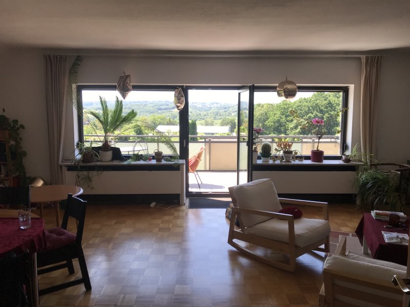 da für mich alleine die Wohnung langfristig zu gross und zu teuer ist, suche ich sowohl befristet, wenn es gut passen sollte, auch unbefristet, eine(n) MitebwohnerIn zur. Die Wohnung hat 3 Zimmer: ein riesiges Wohnzimmer mit einem grossen Süd-West-Balkon mit Blick ins Ruhrtal. Dein Zimmer liegt separat über der Wohnung ebenfalls mit Blick in dieselbe Richtung. Es ist möbliert (könnte aber auch leer vermietet werden) hell und ruhig (bis auf die Flugzeuge).