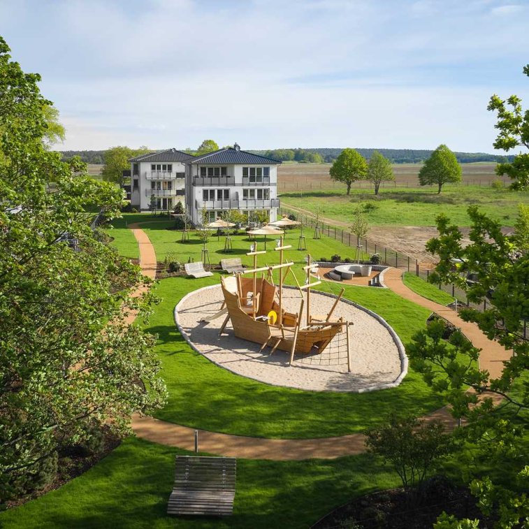 Die gesamte Gartenfläche um die Anlage kann gemeinschaftlich von allen Gästen genutzt werden und bietet viel Platz zum spielen für die Kinder und zum Grillen für die Großen.