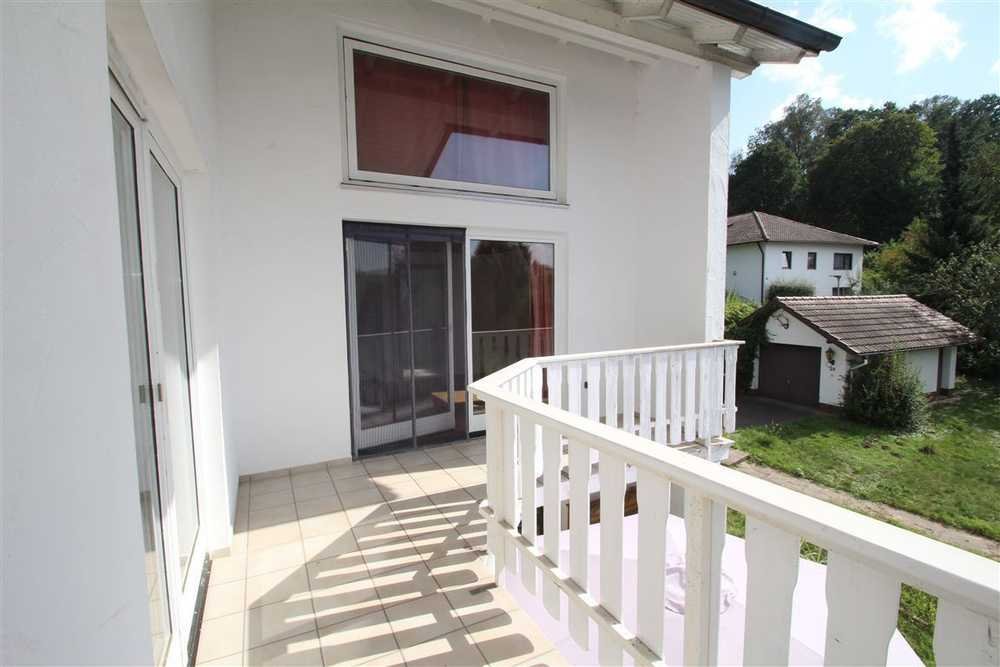 Ein sonniger Balkon mit Blick ins Grüne laden für erholsame Stunden ein.