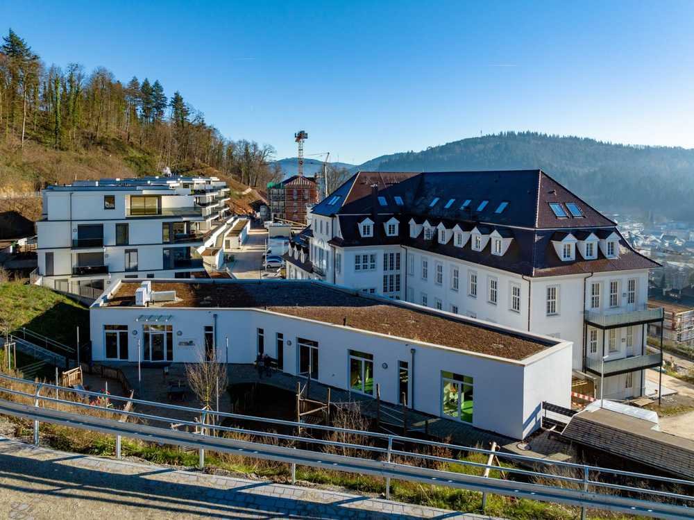 Denkmal/Altbaustil mit neuem urbanem Lifestyle. Hoch über der Stadt Lahr in Südhanglage befindet sich das neue luxuriöse Wohngebiet "Altenberg Park" Das schlossähnliche weiße "Thaederhaus" wurde in über drei Jahren energieeffizient behutsam und mit Fingerspitzengefühl in ein exclusives Mehrfamilienhaus verwandelt. Die besondere Herausforderung war es das historische Erbe und die Schönheit der Architektur zu erhalten und gleichzeitig die Gebäudetechnik der heutigen Zeit zu erreichen. Das Gebäude verfügt nun über eine hocheffiziente Innendämmung, dreifachverglaste Holzsprossenfenster, Fussbodenheizungen mit Einzelraumsteuerungen, hohe helle Räume, offene Wohnküchen, moderne Bäder mit großen bodengleichen Duschen, Hauswirtschaftsräume mit Anschlüssen für Waschmaschinen und Trockner. Jede Wohnung verfügt über einen Kellerraum und über eine Netzwerkverkabelung in allen Zimmern. Alle Türen mit einer Sonderhöhe von 212 cm und als Kassettentüren in weiß. Großzügiger Eingangsbereich, barrierefrei, Briefkastenanlage mit Videosprechanlage und Aufzeichnungsmöglichkeit. Großer Balkon mit unverbaubarem Blick über die Stadt Lahr und angrenzender Grünanlage. In der neuen Tiefgarage bieten wir Ihnen die Möglichkeit an ihrem angemieteten Stellplatz ihr Elektrofahrzeug mit 11 KW zu laden.