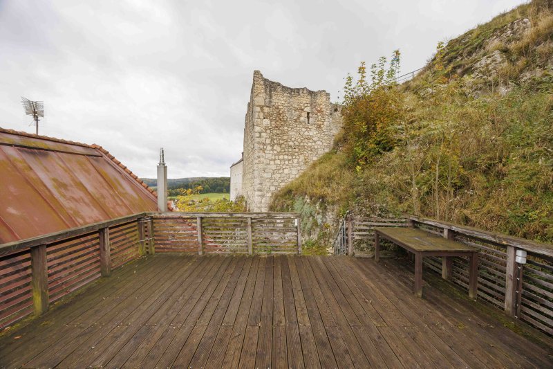 Das denkmalgeschützte Haus befindet sich direkt angrenzend in Südlage zur Burg. Es wurde 2005 umfassend zum Eigenbedarf denkmalgerecht saniert und erhielt 2021 eine neue Gasheizung in Brennwerttechnik. Neben der hochwertigen Ausstattung mit Vollholzdielen und Solnhofer Natursteinfliesen ist vor allem die einzigartige Lage mit Fernblick eine Besonderheit. Eine Marken-Einbauküche (Alno) steht zur Leihgabe zur Nutzung zur Verfügung. Eine Garage und zwei private Stellplätze grenzen an das Gebäude. Ein Schuppen in der Nähe des Hauses kann mitgenutzt werden.
