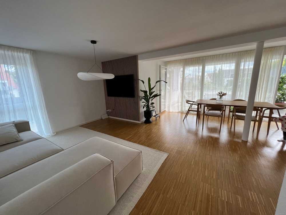 Zum 31.01.2026 können Sie in diese attraktive Wohnung einziehen, die im ersten OG liegt und durch eine gehobene Innenausstattung besticht. Neben vier einladenden Zimmern bietet die Wohnung mit einem Badezimmer und einem separaten Gäste-WC genügend Platz. In der gesamten Wohnung befindet sich ein hochwertiger Industrieparkett (Hochkantlamelle matt versiegelt). Zur Wohnung gehören auch zwei Balkone (17qm und 7qm). Ein großzügiger Keller bietet Ihnen genügend Stauraum. Zur Innenausstattung gehört ebenfalls eine satin matte Einbauküche von der Firma Häcker inklusive Kühl-Gefrierkombination, Geschirrspüler, Backofen und Induktionskochfeld mit integriertem Umluftabzug.
