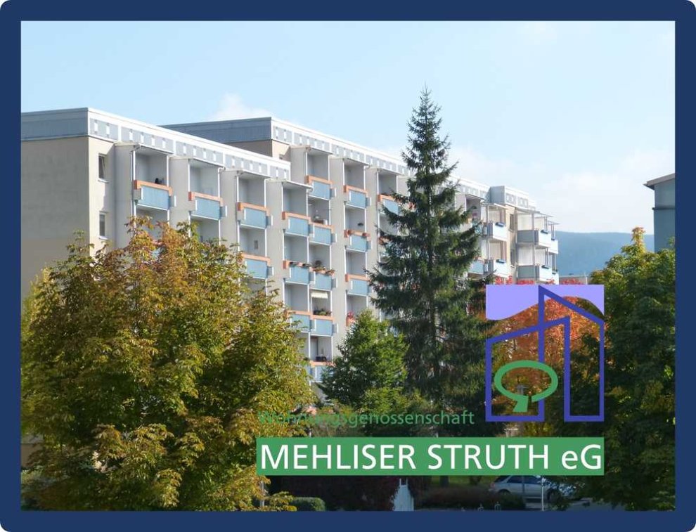 Die 2-Raum-Wohnung liegt in einem 5-geschossigen Mehrfamilienhaus im Wohngebiet Mehliser Struth in Zella-Mehlis in ruhiger Randlage. Das Gebäude ist komplett saniert und mit einer Wärmedämmfassade und neuen Fenstern ausgestattet. Die Wohnlage ist ausgesprochen ruhig und von parkähnlichen Grünanlagen umgeben.