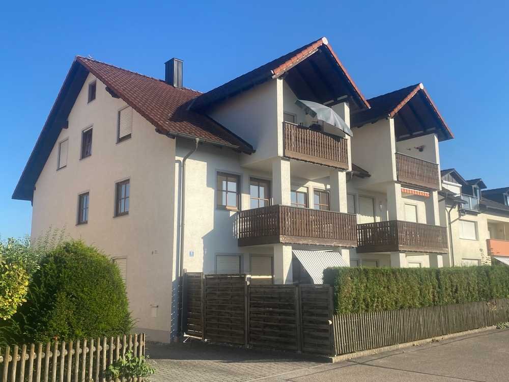 Das Mehrfamilienhaus mit sechs Wohneinheiten wurde 1991 in Massivbauweise erstellt. Die Wohnung im 1. Obergeschoss bietet eine Wohnfläche von ca. 82 m², die sich auf drei Zimmer, Küche, Bad (mit Dusche und Badewanne), extra WC und Abstellraum verteilen. Vom Wohnzimmer und einem Schlafzimmer aus betreten Sie den überdachten Balkon (West-Ausrichtung). Zur Wohnung, die aktuell modernisiert wurde und nach Vereinbarung kurzfristig bezugsfrei ist, gehören eine Einbauküche, ein Kellerraum und zwei PKW-Stellplätze.