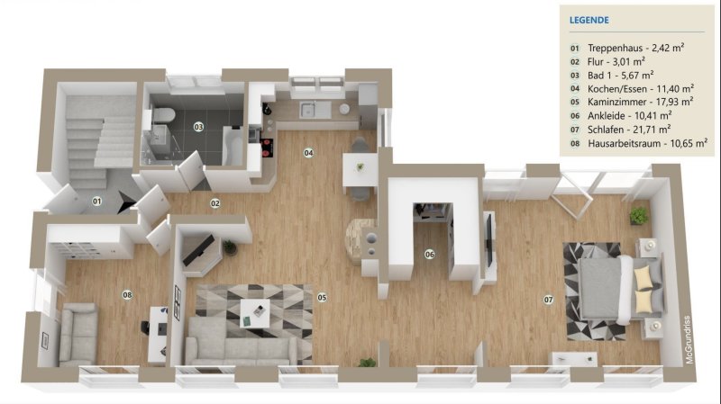 Hinweis: Einrichtung im Grundriss exemplarisch.