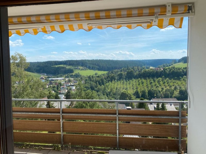 2 sonnige Balkone mit atemberaubender Aussicht auf den Schwarzwald und ein Schwimmbad inkl. Saunabereich (Sauna kostenpflichtig) im eigenen Haus.