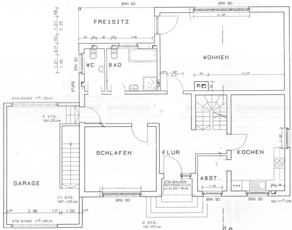 Im Obergeschoss befinden sich 3 weitere Wohnräume und ein Badezimmer mit Dusche und Wanne.