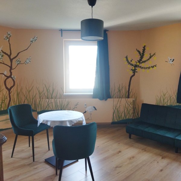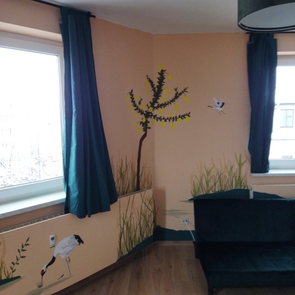 Die Wohnung ist renoviert. Darunter gehören: neuer Fußboden, neue Bad-Amartur, Regenwalddusche, wunderschöne Wandmalereien, Heizungsverkleidung, Kunstwerke