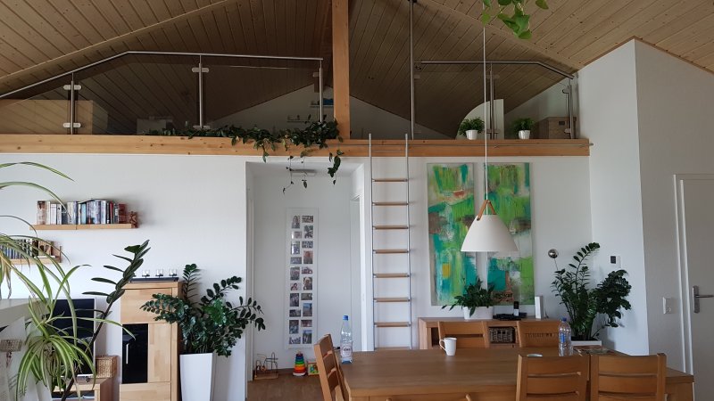 4 Zimmer, 2 begehbare Galerien, Küche, 2 Bäder, Dachterrasse, großzügiger Kellerraum, großer Treppenflur als Garderobe nutzbar