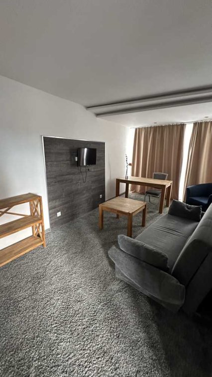 Ihnen steht ein modernes, vollständig möblierte Suite zur Verfügung. Die Suite ist mit modernen, hochwertigen Möbel ausgestattet und lädt mit seiner gemütlichen Atmosphäre zum Wohlfühlen ein. Es liegt im 5. Obergeschoss und verfügt über eine Fläche von ca. 55m². Die Einbauküche bietet Stauraum für Ihr Küchenequipment.