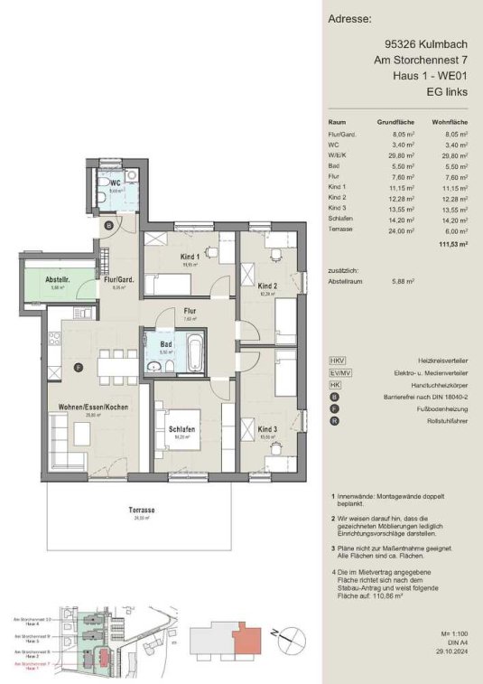 Ab dem 01.05.2025 kann eine dieser attraktiven 5-Zimmer-Wohnungen bezogen werden. Es handelt sich hierbei um einen Erstbezug. Die Wohnung umfasst eine Wohnküche, 4 Schlafzimmer, ein Badezimmer und ein Gäste-WC. Ein aktueller Energieausweis liegt vor. Durch einen Fahrstuhl gelangen Sie bequem ins entsprechende Stockwerk und die Wohnung ist barrierefrei zugänglich. Zur Wohnung gehört auch ein Balkon oder eine Terrasse. Ein Außenstellplatz für Ihr Auto kann für 30,00 € monatlich angemietet werden. Es ist KEIN Kellerabteil vorhanden - dafür ein geräumiger Abstellraum in der Wohnung.