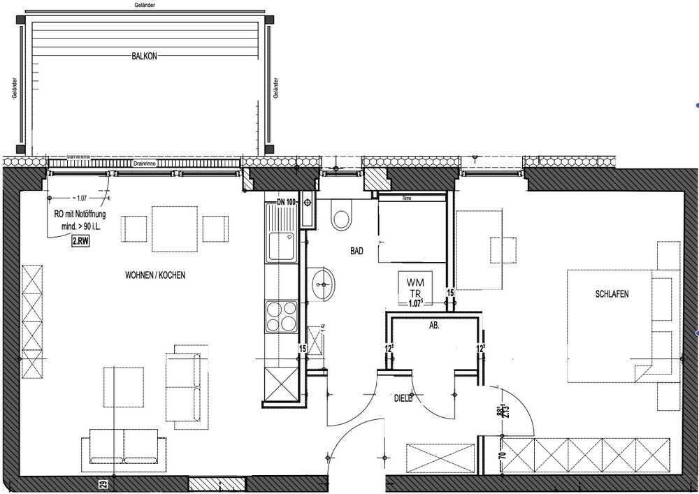 Moderne Zwei-Raum Wohnung mit großem Balkon.