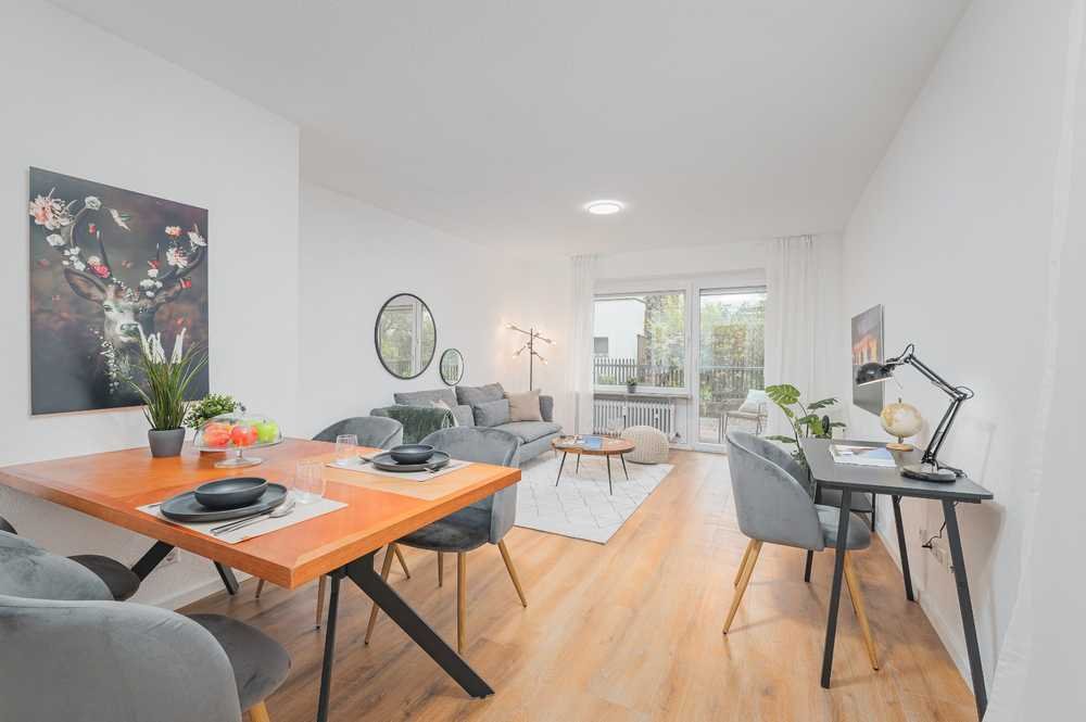 Die Wohnung besteht aus 2,5 Zimmern. Ein großes Schlafzimmer mit Vor-Zimmer, welches perfekt als Ankleide- oder Garderobenzimmer genutzt werden kann und ein großes Wohn-/Esszimmer mit direktem Zugang zur Terrasse, welches das Highlight der Wohnung ist. Aufgrund des ebenerdigen Schnitts und der Ausrichtung nach Süden ist die Wohnung sehr lichtdurchflutet. Das Bad ist komplett erneuert, modern und besitzt auch ein Fenster. Die Küche besteht aus einem großen Raum der ideal genutzt werden kann (Keine Einbauküche enthalten!) Zusätzlich bietet die Wohnung einen separaten Eingang und ist somit unabhängig vom Mehrparteienhaus.