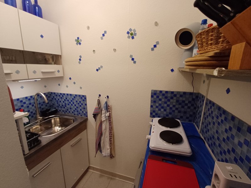 - Kleine Miniküche mit Kochplatte, Mikrowelle,