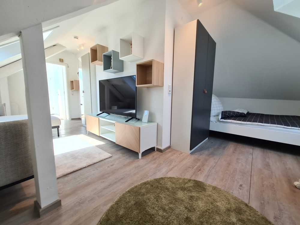Die Wohnung ist voll möbliert und verfügt über einen offenen Wohn-und Schlafbereich, eine moderne Einbauküche und ein Tageslichtbadezimmer mit Dusche.