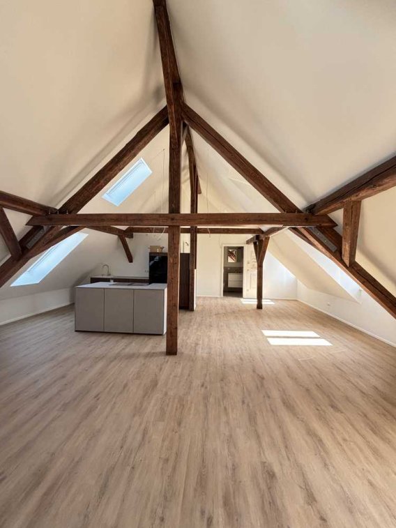Bei dieser ansprechenden Immobilie handelt es sich um einen Erstbezug. Die Loft-Wohnung in der 3. Etage zeichnet sich durch eine gehobene Innenausstattung und Charme - bspw. durch die freistehenden Holzbalken - aus.. Das Objekt umfasst zwei attraktive Zimmer und eine kleine Abstellkammer. Ihnen steht außerdem eine neue hochwertige Einbauküche zur Verfügung.