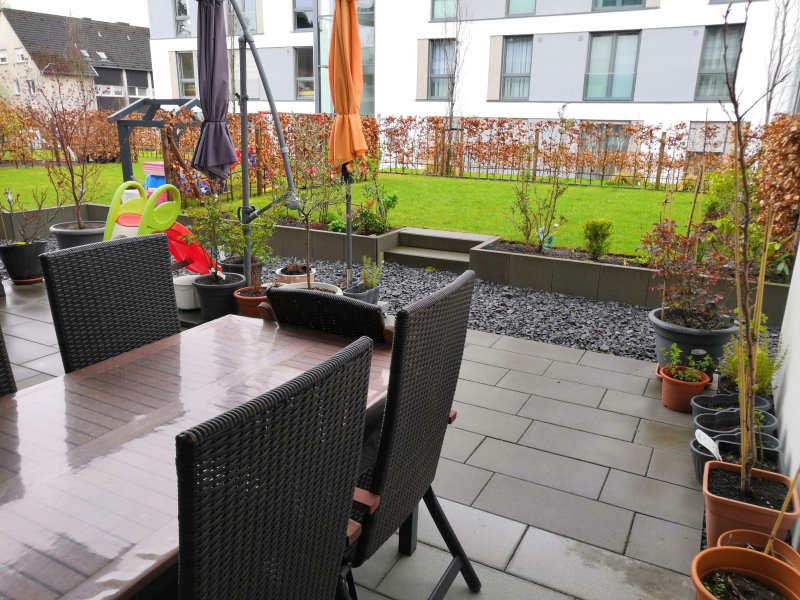 • Große Terrasse mit Garten– ideal zum Entspannen an warmen Tagen
