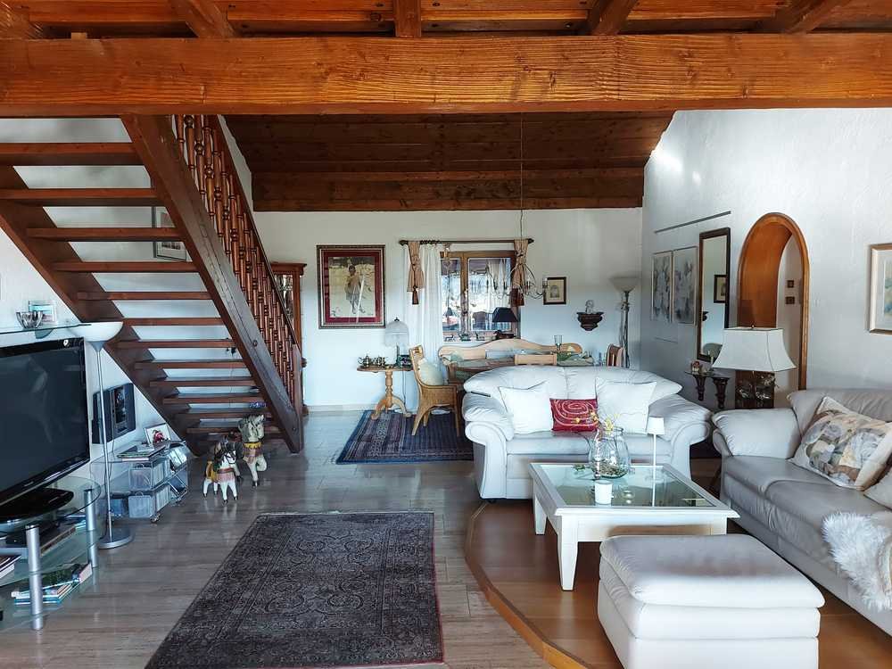 Die Böden bestehen aus Fliesen, Echtholzparkett und dem offen Travertin. Ein offener Kamin sorgt für Gemütlichkeit.