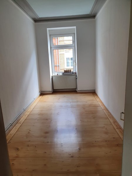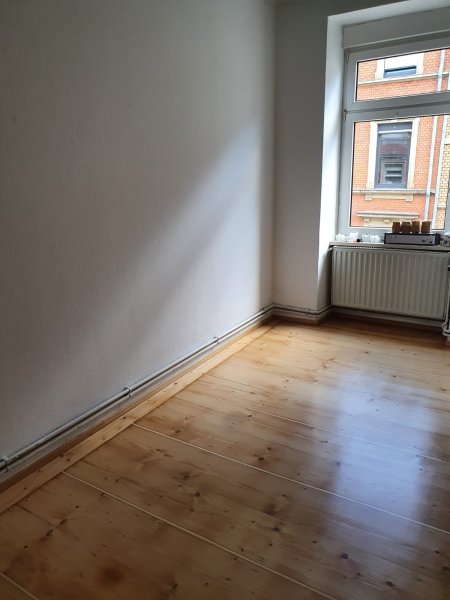 Das etwa 15 qm große Zimmer wird unmöbliert vermietet. Wie die beiden anderen bewohnten Zimmer hat es das Fenster zu Werderstraße hin. Da es die Südseite ist scheint auch den Tag über gerne die Sonne rein. Wie man auf den Bildern erkennen kann sind die Decken in unserer WG sehr hoch was viel kreativen Raum bietet. Die Wohnung bietet neben den zwei anderen bewohnten Zimmer ein Bad mit Duschwanne und Waschmaschine, ein großes Wohn- und Esszimmer sowie eine voll ausgestattete Küche mit Herd, Geschirrspülmaschine, Kühlschrank und Mikrowelle.