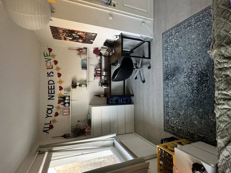 16,3 m² großes Zimmer in einer gemütlichen 3er-WG. Das Zimmer ist dank der zwei großen Fenster sehr hell und bietet einen schönen Blick ins Grüne. Es wird unmöbliert übergeben, aber die Schweberegale können nach Absprache übernommen werden.
