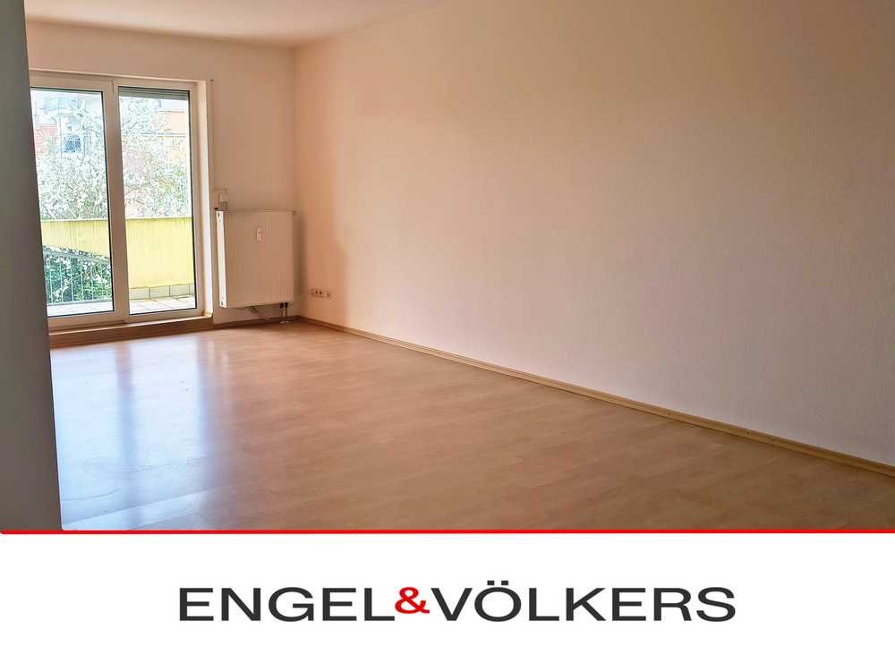 Vom großzügigen, lichtdurchfluteten Wohnzimmer gelangen Sie auf den überdachten Balkon, sowie in die Küche mit Einbauküche und Sitzgelegenheit.