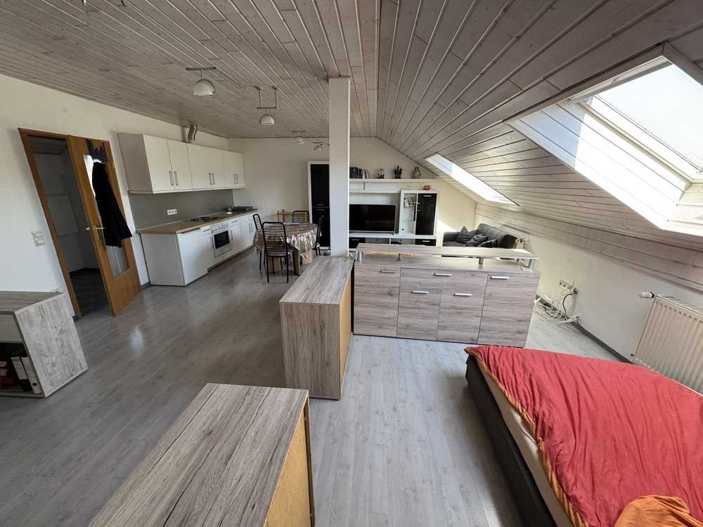 Ich vermiete eine sehr helle und geräumige 1-Zimmer-Dachgeschosswohnung (45 m²) in einem gepflegten Dreifamilienhaus. Die Wohnung ist mit hellem Laminat ausgestattet, hat ein Tageslichtbad mit Dusche sowie eine Einbauküche. Es gibt einen Abstellraum in der Diele und zusätzlichen Stauraum direkt vor der Wohnungstür. Kabel- und DSL-Anschluss sind vorhanden, außerdem ein gemeinsamer Wasch- und Trockenraum.
