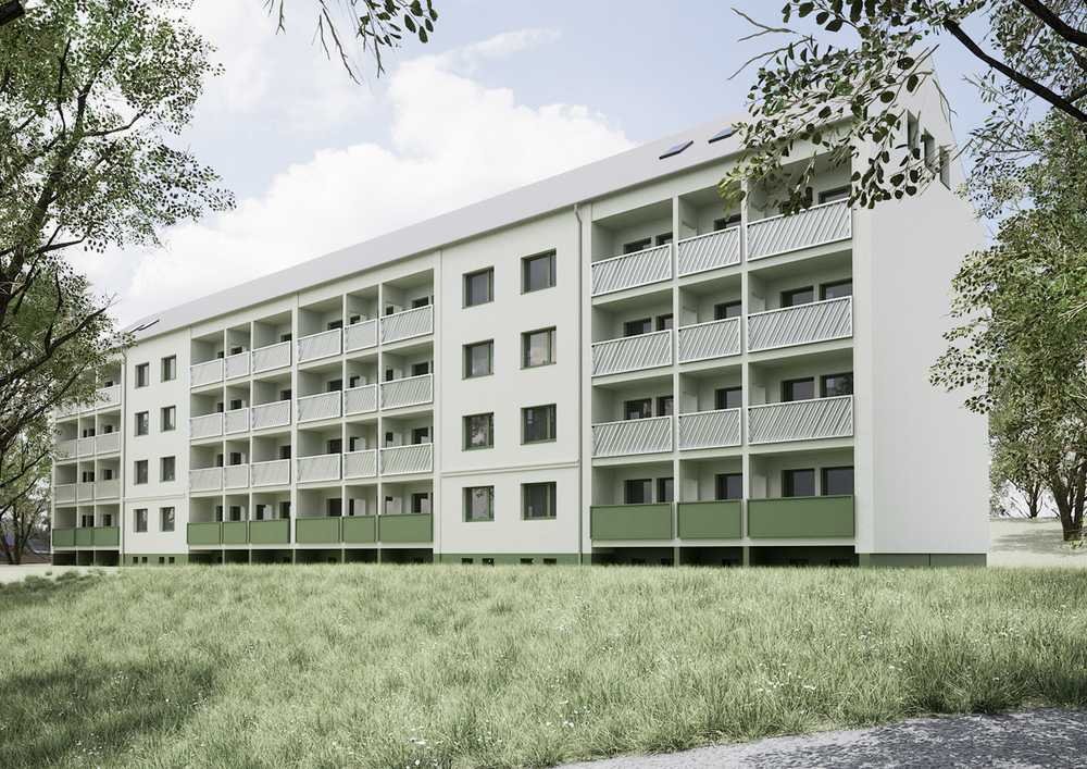 Zur Zeit wird hier ein neues Bauprojekt verwirklicht. In einem Wohnblock der 1980-iger Jahre im Gebiet Lessingstraße entstehen 2- bis 4- Raum-Wohnungen mit völlig neuen Grundrissen, die im Haus ein Mehrgenerationen-Wohnen ermöglichen. Alle Wohnungen werden mit dem Fahrstuhl erschlossen. Weiterhin haben alle Wohnungen einen Balkon, Fußbodenheizung und ebenerdige Duschen in den Bädern. Die hier angebotene 3-Raum-Wohnung hat eine Dusche. Die Beheizung erfolgt über Wärmepumpen und zusätzlich bei Bedarf über eine Gastherme. Energetisch wird das Haus den gesetzlichen Erfordernissen angepaßt (Außendämmung, Fenster, Türen). Zu jeder Wohnung gehört ein Kellerabteil.
