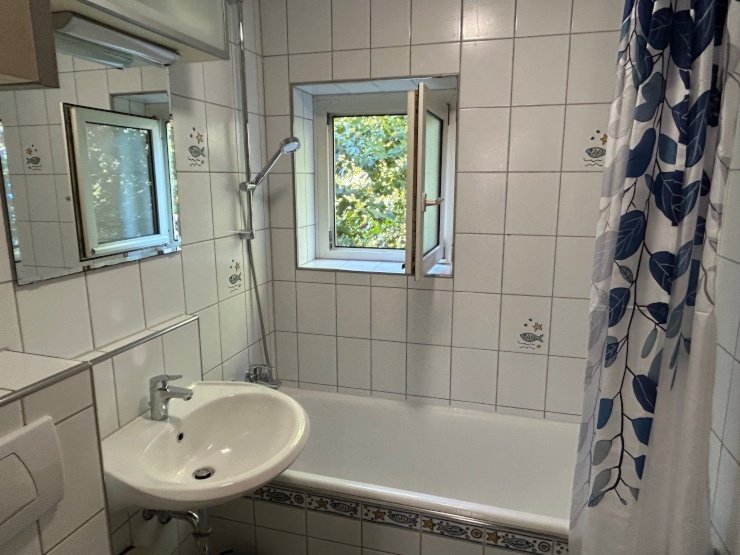 Das Bad verfügt über eine Dusch/Badewanne mit einem Fenster in den begrünten Innenhof.
