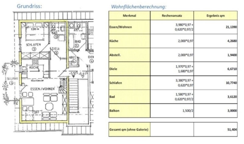 2,5-Zimmer-Wohnung mit Galerie im 2. Obergeschoss eines Mehrfamilienhauses.