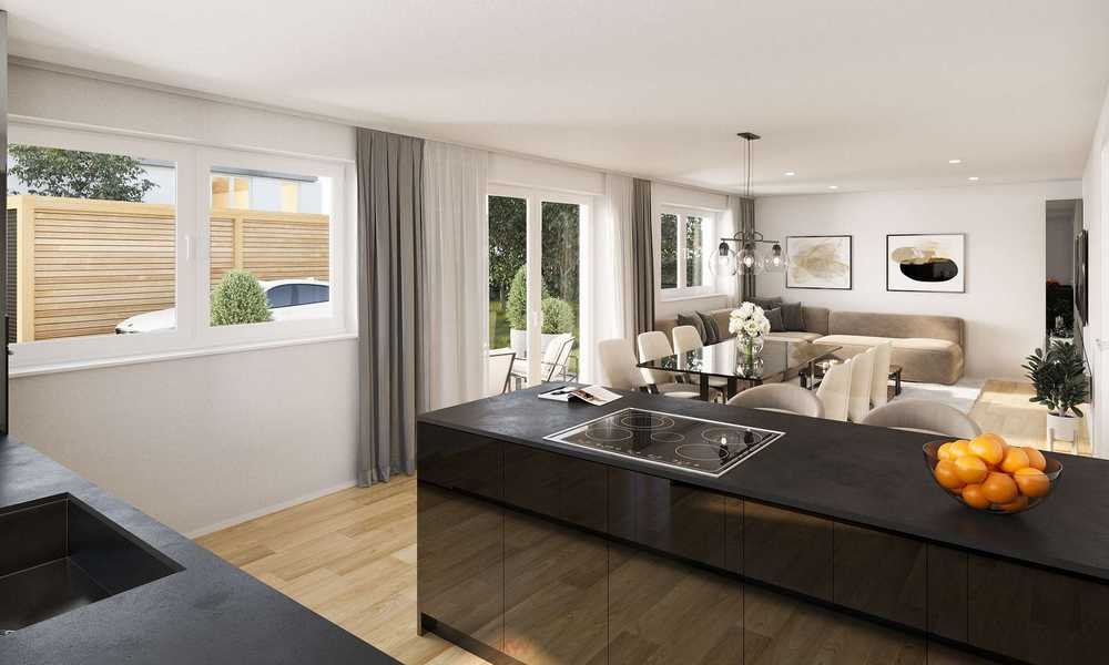 Das Highlight ist die großartige, familienfreundliche Aufteilung der Räume, mit Platz für 2 Kinderzimmer, 1 Schlafzimmer und einem großen Familien Kochen/Essen/Wohnbereich im Erdgeschoß, der lichtdurchflutet auf die Terrasse führt.Richtig schön ist der lichtdurchflutete Büroraum/Gästezimmer im Keller in voller Wohnraumqualitt
