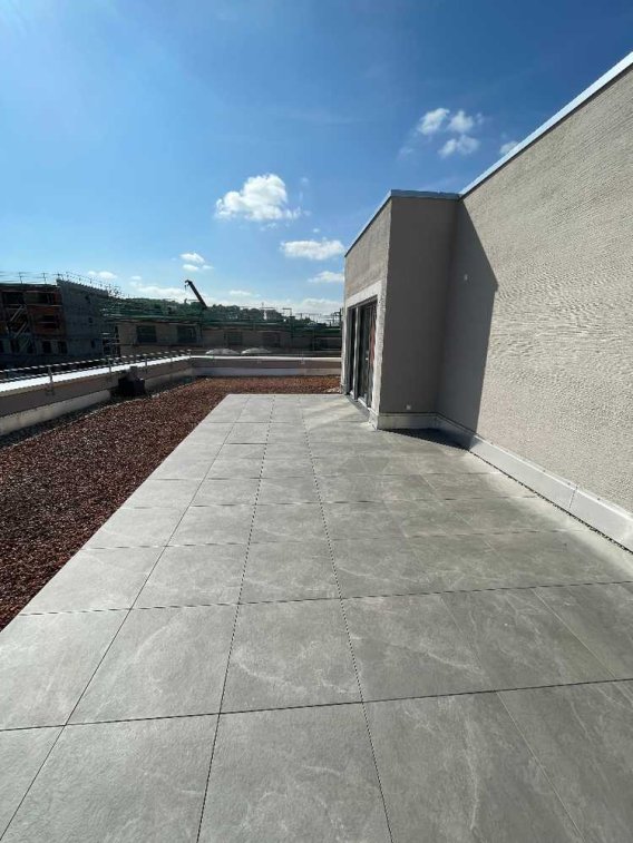 Es handelt sich um einen Neubau eines Mehrfamilienhauses. Die Maisonettewohnung befindet sich im 1. Obergeschoss und erstreckt sich demnach auf zwei Etagen. Auf der ersten "Ebene" befinden sich drei Schlafzimmer, das Tageslichtbad, das Gäste-WC sowie ein Abstellraum. Das Badezimmer ist mit einer bodenebenen Dusche als auch einer Badewanne ausgestattet. Auf der zweiten "Ebene" befindet sich das Wohnzimmer, der Essbereich sowie die offen gestaltete Küche und ein weiterer Abstellraum. Dlle Räumlichkeiten sind modern ausgestattet, lichtdurchflutet und hell. Der großzügige Grundriss und die beiden Dachterrassen stellen das Highlight der Wohnung dar. Zur Wohnung gehört ein ebenfalls großzügiges Kellerabteil. Das Mehrfamilienhaus verfügt über einen überdachten Fahrradabstellplatz. Zusätzlich kann ein Außenstellplatz mit angemietet werden