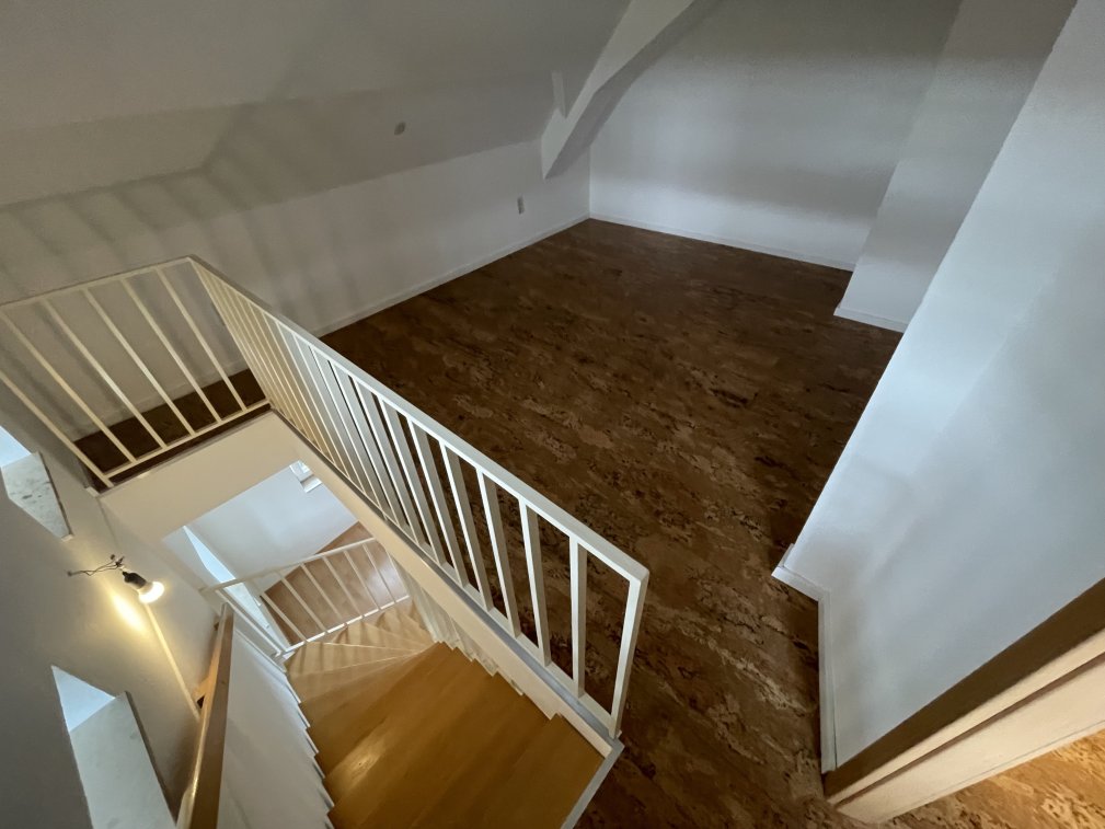 Die Wohnung verfügt über eine moderne, luftige Aufteilung der Räume über zwei Etagen und viel Ausblick ins Grüne.