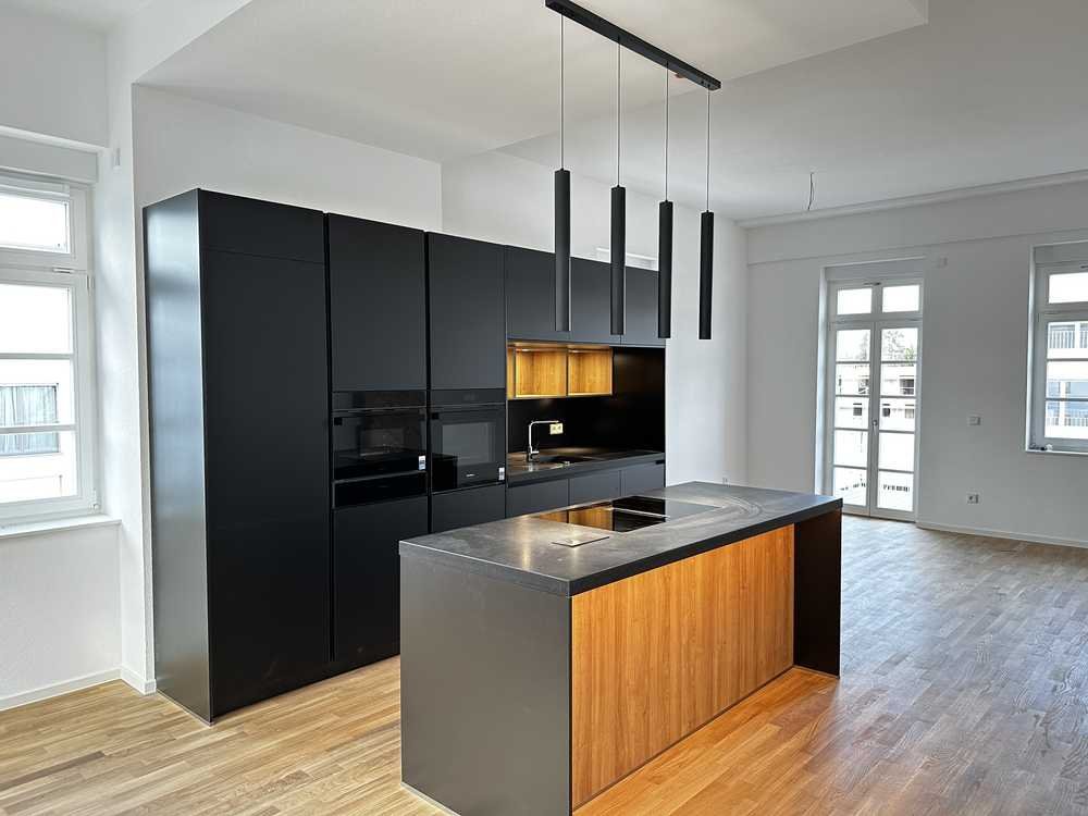 Anschluss, mehrere große Stauräume sowie über ein Wohn – Esszimmer mit offener mattschwarzer exklusiver Einbauküche mit modernsten Elektrogeräten der Marke Siemens incl. breitem Induktionskochfeld mit Tischabsaugung, Backofen, zusätzlichem Dampfgarbackofen, großer Kühlschrank und zusätzlichem
