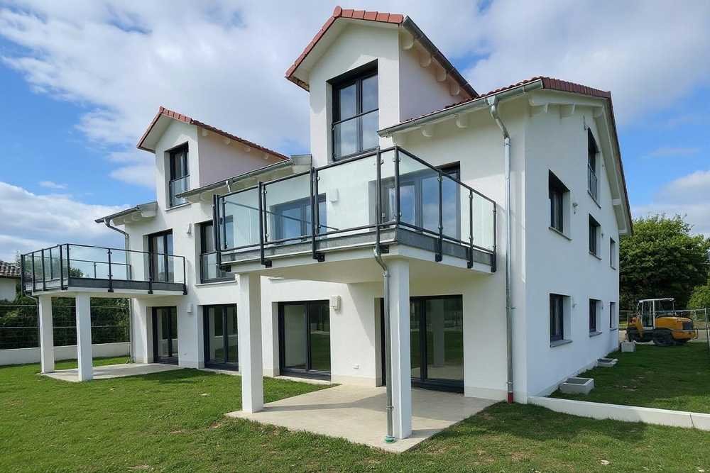 Ab dem 1.9.2025 können Sie diese beiden energieeffizienten KfW40 QNG Neubau OG-Wohnungen beziehen. Die OG-Wohnungen ziehen sich auf zwei Ebenen und verfügen über modernste Ausstattung mit hochwertiger Einbauküche. Es handelt sich hierbei um einen Erstbezug in Ziegel-Massivbauweise in lichtdurchfluteten Räumen in absolut ruhiger Wohnlage mit herrlichem Bergblick. Die circa 30 m²  großen, geschlossenen Kellerräume mit Fliesenbelag, die großzügigen Garagen und Außenstellplätzen sowie die großen Balkone bieten viele Entfaltungsmöglichkeiten. Zu den Wohnungen zählen drei lichtdurchflutete Zimmer, eine  Galerie mit fantastischen Bergblick, je Raum Be- und Entlüftungsanlagen, ein luxuriöses Badezimmer und ein separates Gäste-WC. Das Vierfamilienhaus wird mit einer PV-Anlage und einer Wärmepumpe betrieben. Besonders hervorzuheben ist, dass jeweils ein sehr großer Balkon nach Süden mit Bergblick vorhanden sind. Ein großer Wasch- und Trockenraum steht Ihnen im Keller zum Anschluss Ihrer Waschmaschine zur Verfügung. Die Vermietung erfolgt direkt vom Eigentümer provisionsfrei.