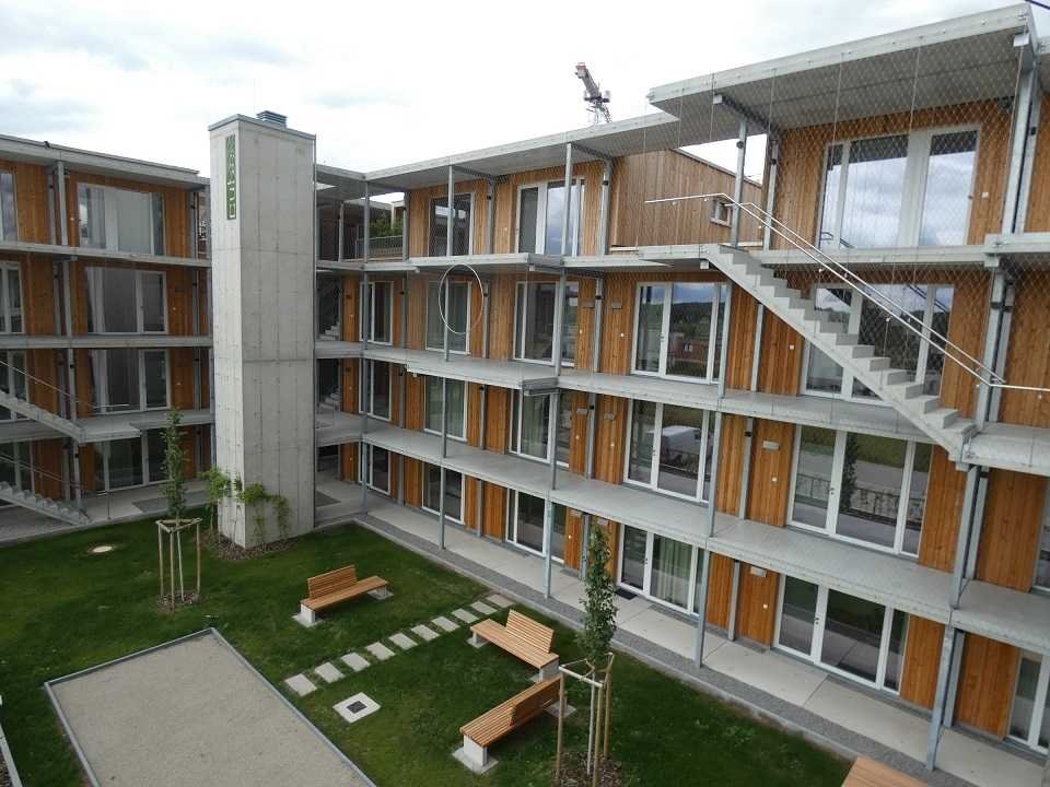 schaffen mit ihren Aufweitungen und Verbreiterungen Platz für Sitzgelegenheiten und Lounge Bereiche, die gemeinsam genutzt werden können. Die Wohnungen profitieren von der 2-seitigen Belichtung und Belüftung, ebenso wie von der unterschiedlichen konzeptionellen Ausrichtung: Jedes Apartment hat eine ruhige, dem Hof abgewandte Seite mit vorgelagertem, privaten Balkon sowie eine dem Laubengang zugewandte kommunikative Seite.