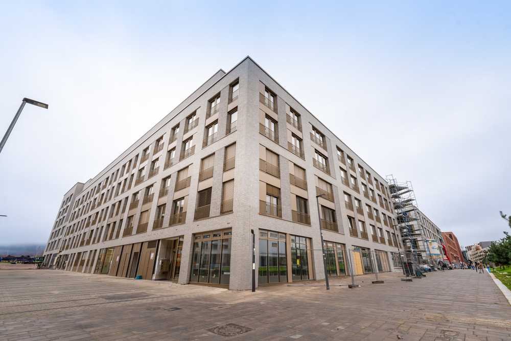 Der gemeinschaftliche Innenhof verfügt über einen Spielplatz und einen Garten.