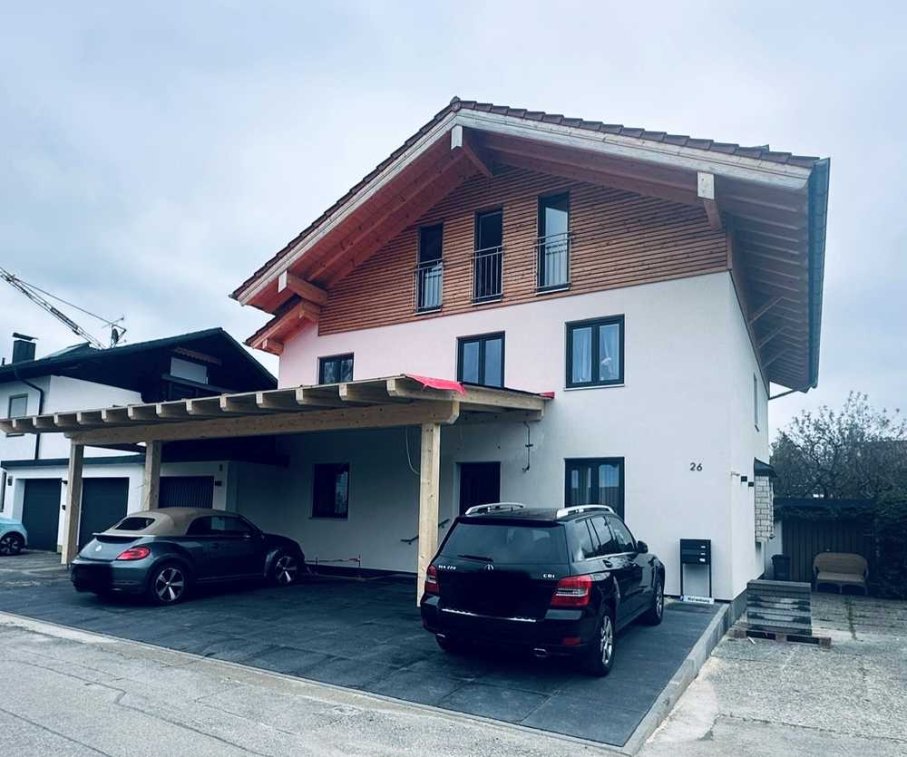 Ab dem 1.7.2025 kann die ansprechende, ruhige Wohnung, die in der 1. Etage in einem 3-Familienhaus liegt, bezogen werden. Wie für modern ausgestattete Wohnungen üblich, gehören zu den drei schönen Zimmern auch ein Badezimmer (sowohl mit Dusche als auch einer sep. Badewanne) sowie ein separates Gäste-WC. Auf dem Süd-Balkon lässt es sich wunderbar verweilen mit freiem Bergblick auf die Chiemgauer Berge. Ein Stellplatz für Ihr Auto gehört ebenfalls zur Wohnung, weshalb Sie immer einen Parkplatz finden. Ebenfalls komfortabel ist der Kellerraum, der Stauraum für Gegenstände bietet (kann für 50 Euro sep. angemietet werden). Ebenfalls kann eine Garage angemietet werden. Der Waschmaschinenanschluss befindet sich im gemeinsamen Waschraum im Keller.