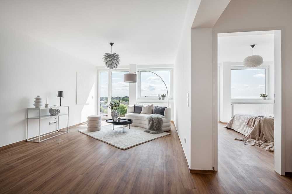 Mit einer Wohnfläche von ca. 63 m² bietet die Wohnung ein durchdachtes Raumkonzept, das sich ideal für Singles oder Paare eignet. Die lichtdurchfluteten Räume schaffen eine angenehme Wohnatmosphäre, während die glatt verputzten Wände und modernen Bodenbeläge ein stilvolles und zeitgemäßes Ambiente unterstreichen.