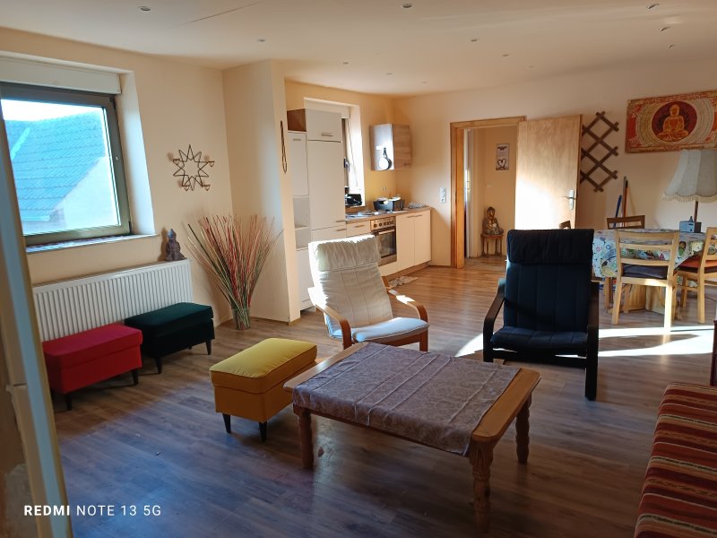 Großzügige Wohnküche mit div. Sitzmöglichkeiten und TV