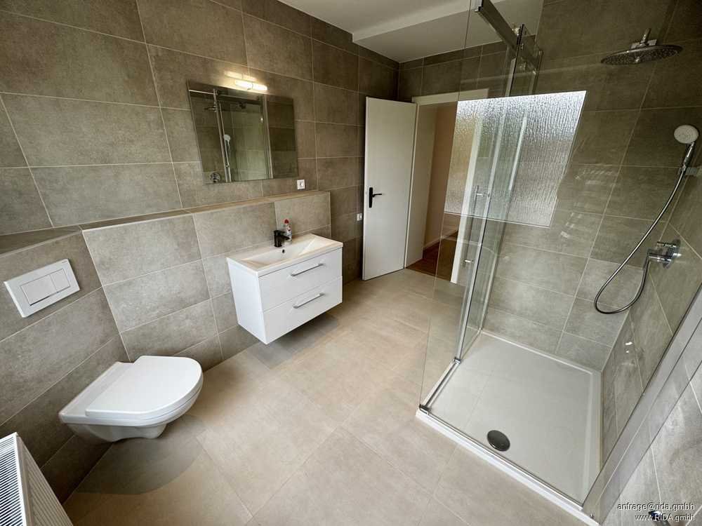 Zwei vollausgestattete Badezimmer, beide mit hochwertigen Duschen und großformatigem Feinsteinzeug, greifen diese Linie konsequent auf. In den Wohnräumen verleiht das durchgängige Parkett dem Alltag eine angenehme Bodenhaftung – natürlich, warm, ehrlich.